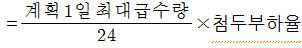 여기서, 첨두부하율: 1.3(대도시, 공업도시), 1.5(중소도시), 2.0(농촌, 주택단지, 소도시