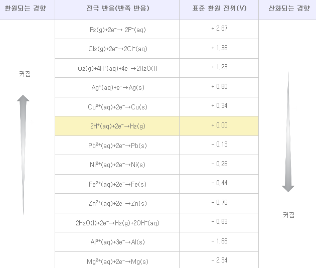 반대로 표준환원전위가 작으면 산화되는 경향이 크다